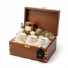 Enlighten your home with this beautiful gift basket. This gift basket will have scented candles, candle holders and long lasting jar shaped candles. Beautiful wooden box included as you see in picture..